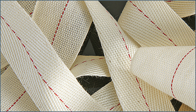 A wide range of products including plain tapes, jacquard, tricot, canvas belts, fashion tapes, loom elastics, ecru cotton tapes and yarn dyed tapes